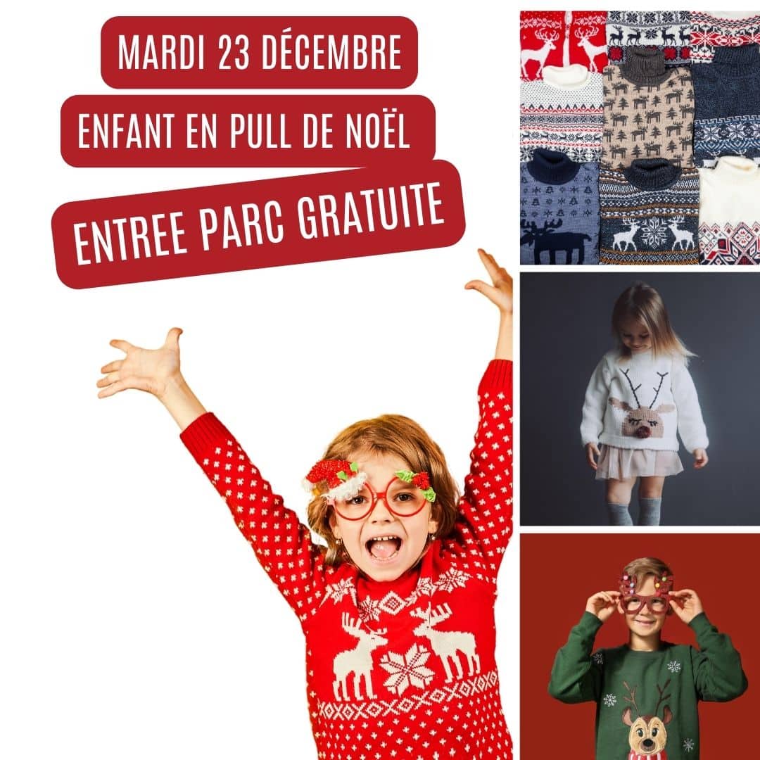 Le mardi 23 décembre, c’est la veille des festivités de Noël. Alors nous fêtons cela avec vous en offrant l’entrée aux enfants (3/12ans) habillés au couleur de Noël avec un joli pull !